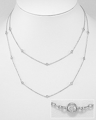Luxusní náhrdelník s čirými, kulatými zirkony - šperky rhodiované stříbro Ag 925/1000.