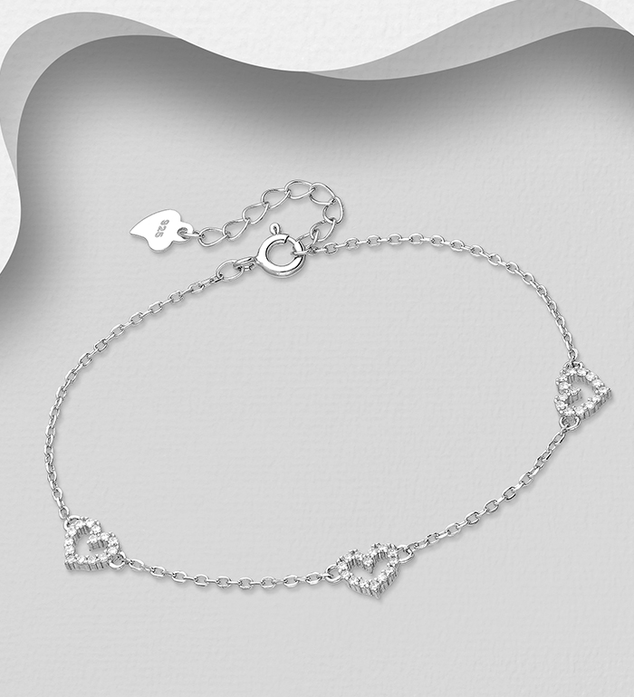 Srdíčkový náramek se zirkony - materiál stříbro Ag 925/1000